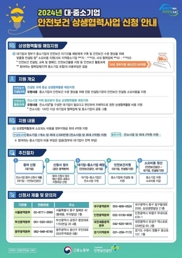 [세종타임즈] 고용노동부와 산업안전보건공단은 내년도 대·중소기업 안전보건 상생협력에 참여할 대기업 및 중소기업을 12월 4일부터 12월 21일까지 모집한다.