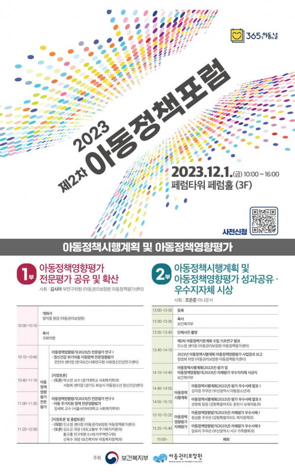 [세종타임즈] 보건복지부와 아동권리보장원은 12월 1일 10시에 페럼타워 페럼홀에서‘2023년 제2차 아동정책포럼’을 개최했다.