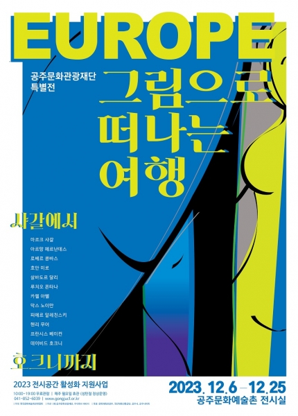 'Europe:그림으로 떠나는 여행'은 문화체육관광부 산하 한국문화예술회관연합회에서 주관하는 ‘2023년 전시공간 활성화 지원사업’에 선정되어 진행하는 전시다.