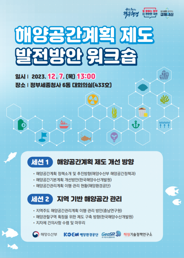 [세종타임즈] 해양수산부는 2019년부터 시행 중인 해양공간계획 제도의 성과를 평가하고 개선 방향을 논의하기 위해 12월 7일 정부세종청사에서 '해양공간계획 제도 발전방안 발표·토론회'를 개최한다.