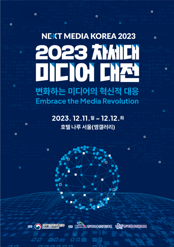 [세종타임즈] 과학기술정보통신부는 한국방송통신전파진흥원, 한국전파진흥협회와 함께 ‘2023 차세대 미디어 대전’ 행사를 12월 11일부터 12일까지 호텔 나루 서울 엠갤러리에서 개최한다 올해 제9회를 맞이하는 본 행사는 방송·미디어의 최신 산업동향 공유 및 미래 전략을 모색하고 산·학·연 교류의 장을 마련하기 위해 과기정통부가 주최하는 방송·미디어 분야 대표 행사이다.