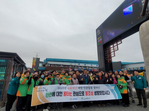 [세종타임즈] 서천군이 지난 12일 화재위험이 급증하는 동절기를 맞아 화재에 대한 경각심을 일깨우고 안전의식을 제고하고자 서천특화시장을 방문해 사회재난 예방 민관합동 캠페인을 진행했다.