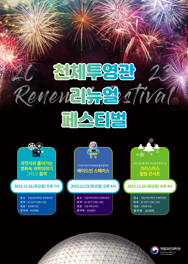한형주 관장은 “천체투영관을 활용한 다채로운 과학문화 행사로 관람객들에게 따뜻한 연말을 선물할 것”이라고 밝혔다.