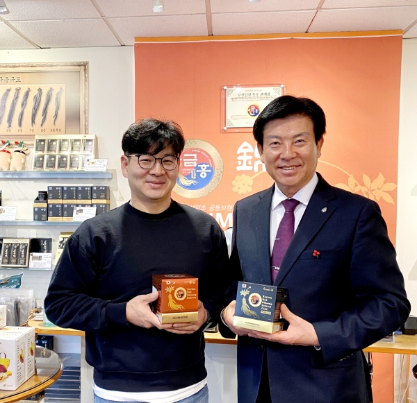 박 군수는 17일 미국 뉴욕 첫 일정으로 지난 2015년 뉴저지주에 개장한 금홍매장을 방문, 알렌김 대표와 만나 금산인삼 제품을 꾸준하게 홍보하고 판매해 준 데 감사를 표하고 현지 언론과 인터뷰를 통해 금산인삼의 우수성을 알렸다.