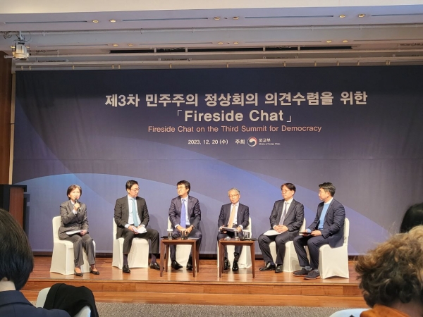 외교부는 내년 3월 개최 예정인 제3차 ‘민주주의 정상회의’의 성공적 개최를 위해 국제사회 이해관계자 및 전문가, 그리고 청년들과의 소통을 지속해 나갈 예정이다.