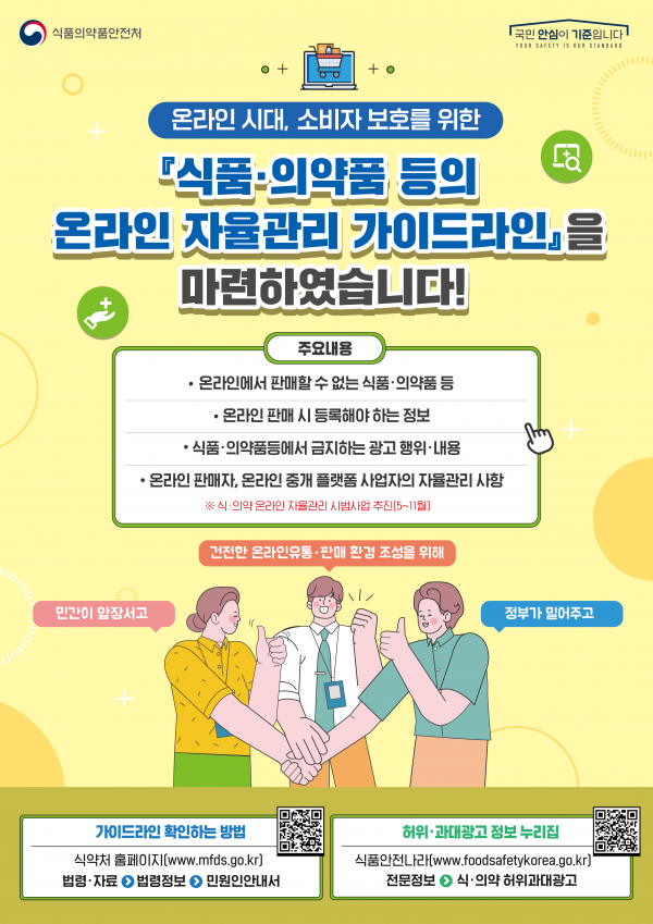 식약처는 앞으로도 민간이 앞장서고 정부가 밀어주는 민·관 협업을 바탕으로 식·의약 온라인 부당광고 등 불법행위에 대한 자율 점검을 확대해 건전한 온라인 유통 문화를 정착시키고 소비자 피해를 예방하기 위해 최선을 다하겠다고 밝혔다.