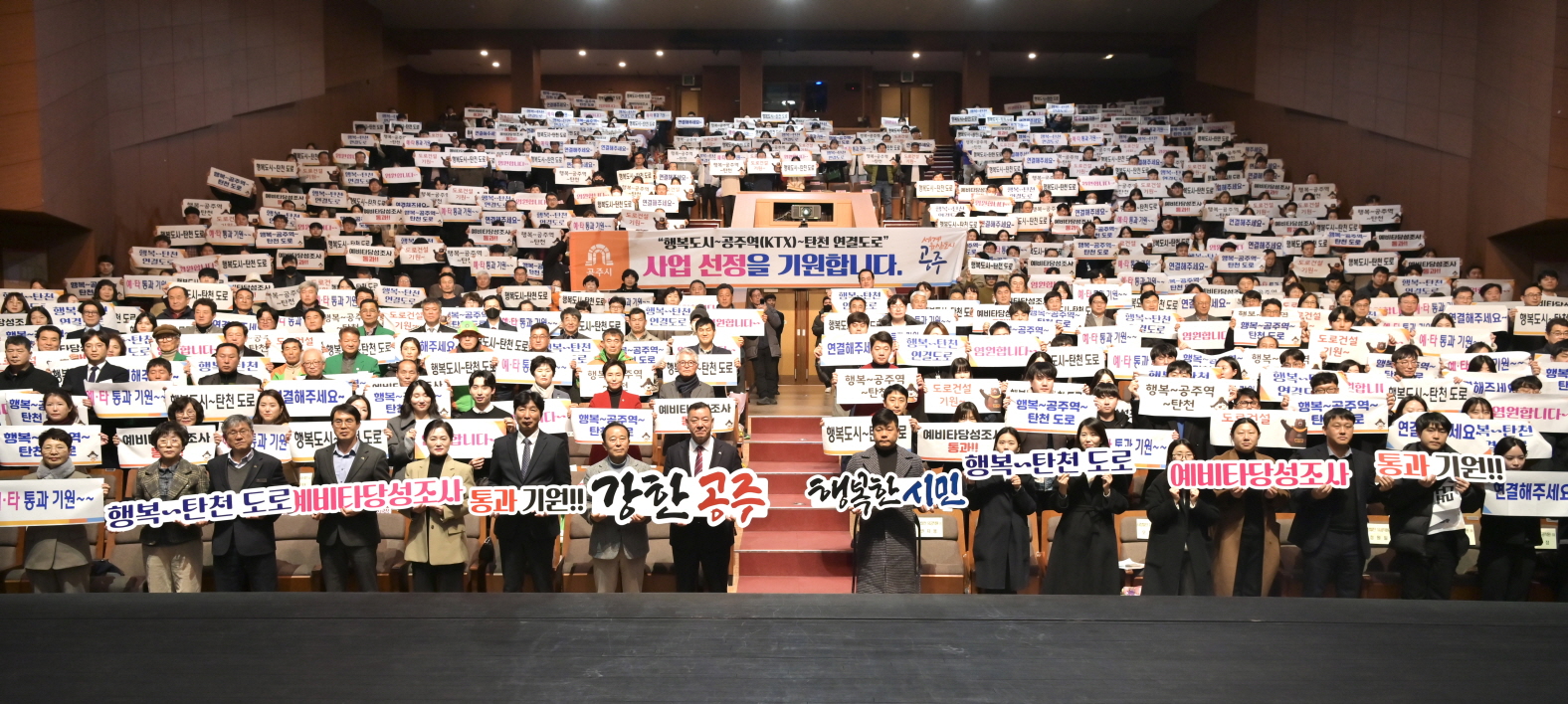 [세종타임즈] 공주시가 ‘세종시∼공주역(KTX)∼탄천 연결도로’ 사업의 2024년 예비타당성조사 통과를 기원하는 퍼포먼스를 진행했다.