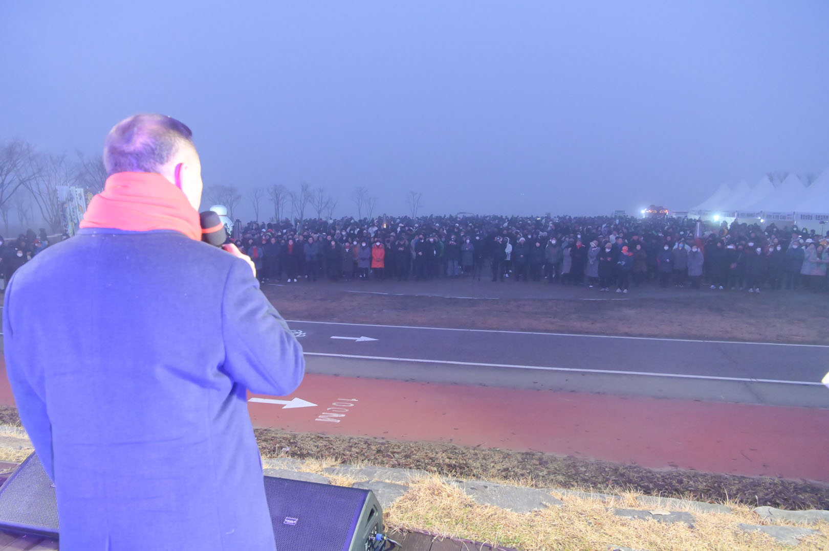 공주시는 1일 오전 6시 50분부터 약 1시간 동안 공주시 발전과 시민 화합을 기원하는 해맞이 행사를 1천여명의 시민들과 함께 개최했다.
