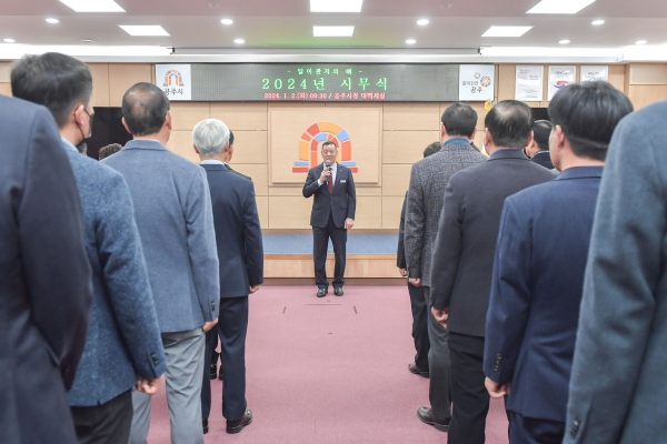 시는 2일 시청 대백제실에서 최원철 시장을 비롯한 시 산하 공직자 150여명이 참석한 가운데 2024년 시무식을 열고 본격적인 새해 업무를 시작했다.