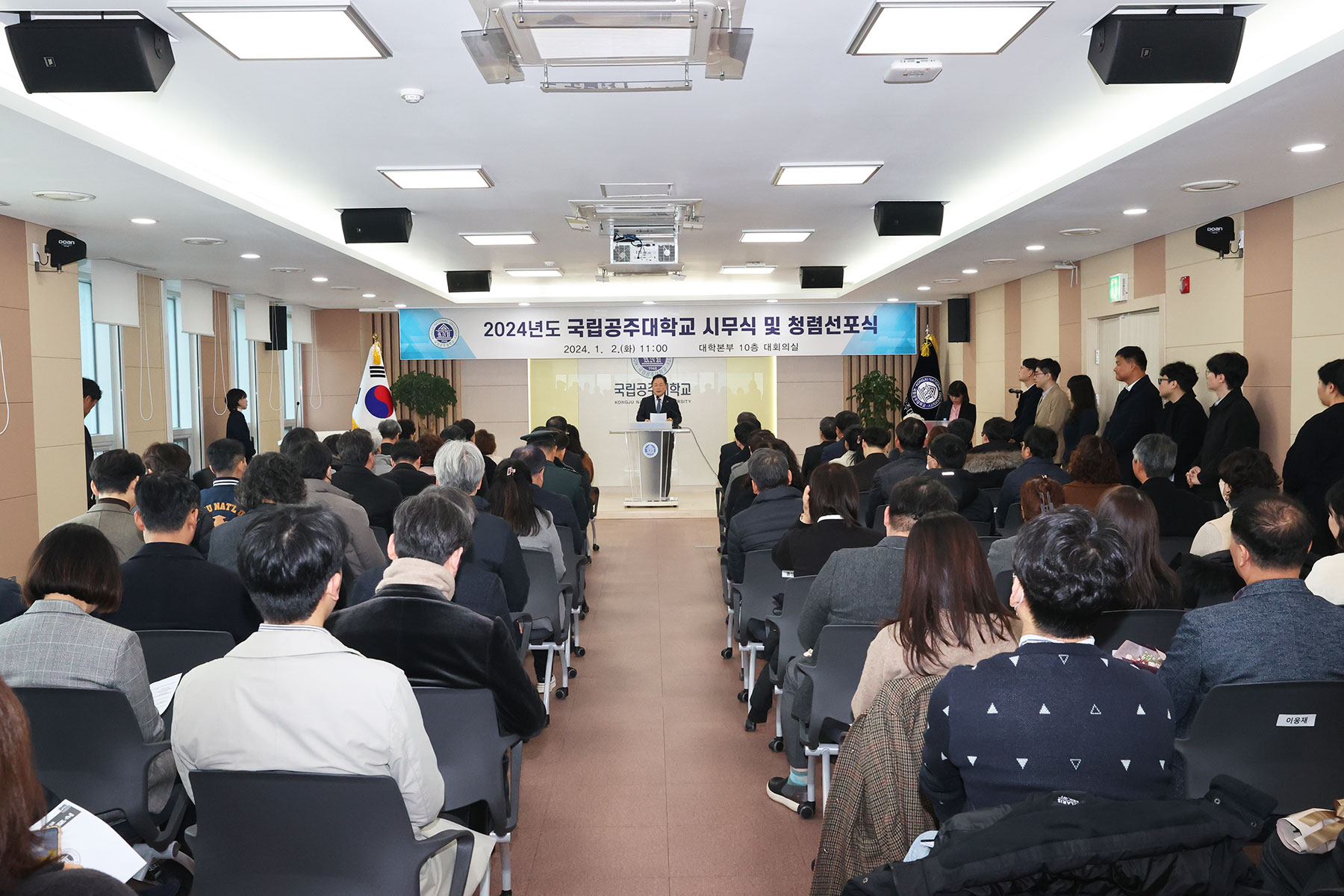 [세종타임즈] 국립공주대학교는 2일 대학본부 대회의실에서 임경호 총장을 비롯한 보직자, 교직원, 학생 등이 참여한 가운데 2024년도 시무식 및 청렴선포식 행사를 가졌다.