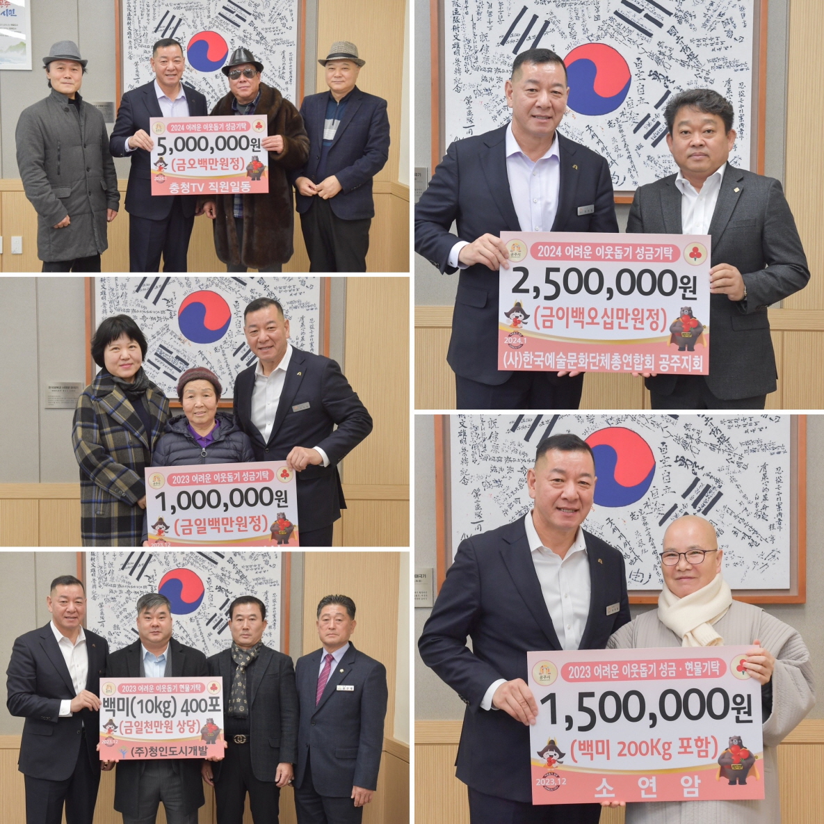 백제천막에서는 백미 1000만원 상당을 전달하며 어려운 이웃이 좀 더 따뜻한 겨울을 보내길 바랐으며 생활용품제조업체 닥터스타크린에서도 어려운 이웃을 위해 성금 500만원을 전달했다.