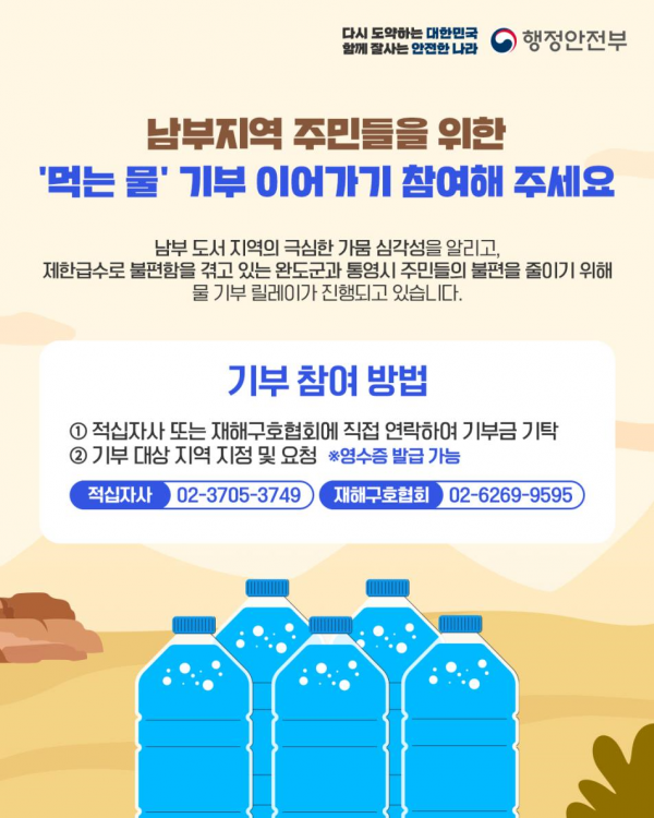 아울러 행정안전부는 여건이 열악한 섬 지역의 가뭄 극복을 위해서도 세심한 지원을 펼쳤다.