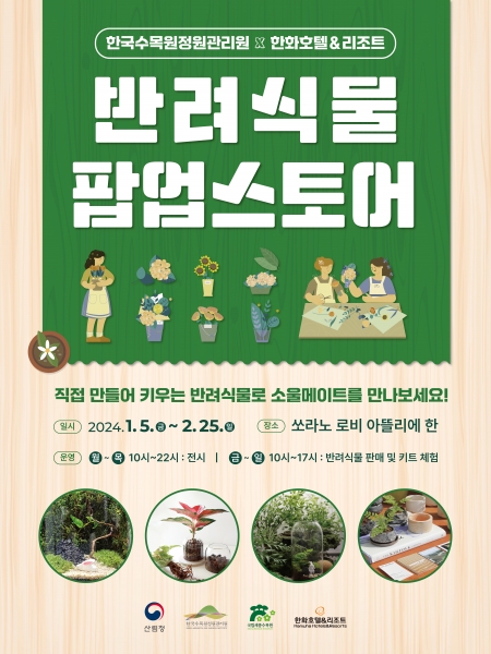 [세종타임즈] 한국수목원정원관리원은 오는 2월 25일까지 한화호텔앤드리조트 설악 쏘라노에서 반려식물 팝업스토어를 운영한다.