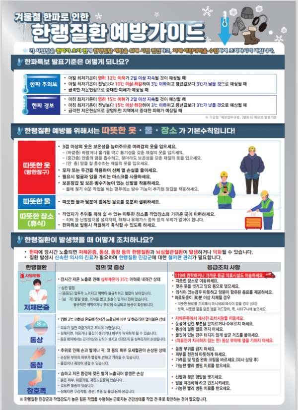 특히 환경미화 종사자의 상당수는 50세 이상 중장년이 많아 겨울철 한파에 따른 한랭질환뿐 아니라 뇌심혈관 질환 발생의 위험이 매우 높다.