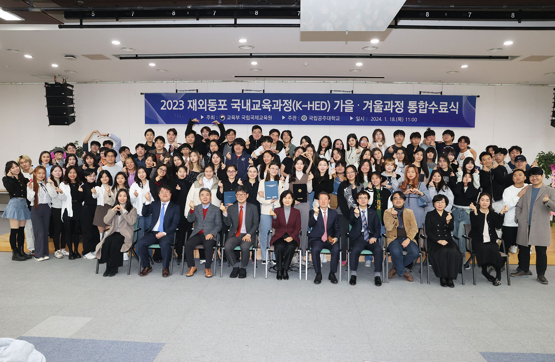 통합수료식 행사는 국립공주대학교 교무처장, 재외동포교육센터장, 교육부 국립국제교육원 원장, 재일본대한민국민단 본국사무소장 등이 참석한 가운데 대학수학준비과정(가을)과 한국이해과정(겨울) 수료생 총 89명이 수료했다.