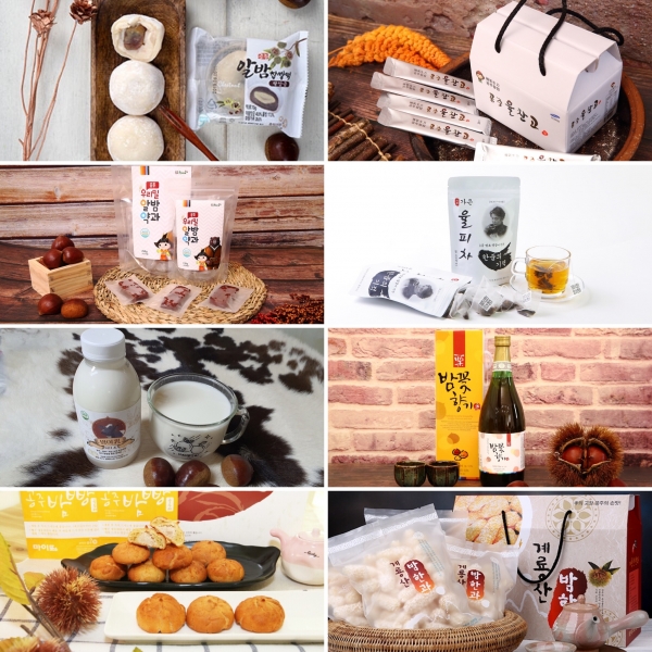 공주알밤을 활용한 가공 상품을 생산하는 관내 업체는 총 24곳으로, 제과, 유가공품, 전통 식품, 차류, 잼류, 디저트류 등 다양한 품목을 개발했다.