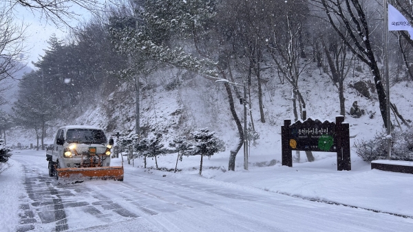 남성현 산림청장은 “충청·전라·제주권에 대설특보가 발효되어 폭설로 인한 안전사고 발생 우려가 높으므로 해당 지역의 숲길, 산림 다중이용시설 이용을 자제해 달라”며 “눈 피해 발생 시 신속한 응급복구에 나설 수 있도록 대응체계를 강화하고 있다”고 말했다.