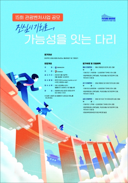 공사 권종술 관광기업지원실장은 “전년도 관광시장 회복세에 이어 2024년은 관광벤처가 관광산업 확장을 주도하는 주역으로 성장할 수 있도록 투자유치 및 해외시장 진출 등 적극적인 지원에 나설 계획”이라며 “실력 있는 기업들의 많은 참여를 기대한다”고 전했다.