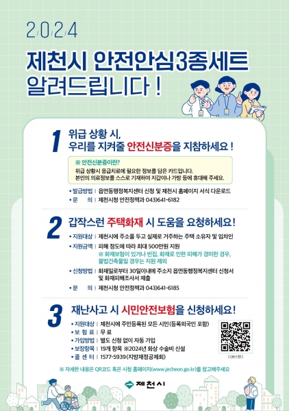 [세종타임즈] 제천시가 2024년을 맞아 다양해지는 재난 상황에서 시민들의 재산과 생명을 보호하기 위해 ‘시민안심안전 3종 세트’를 추진한다.
