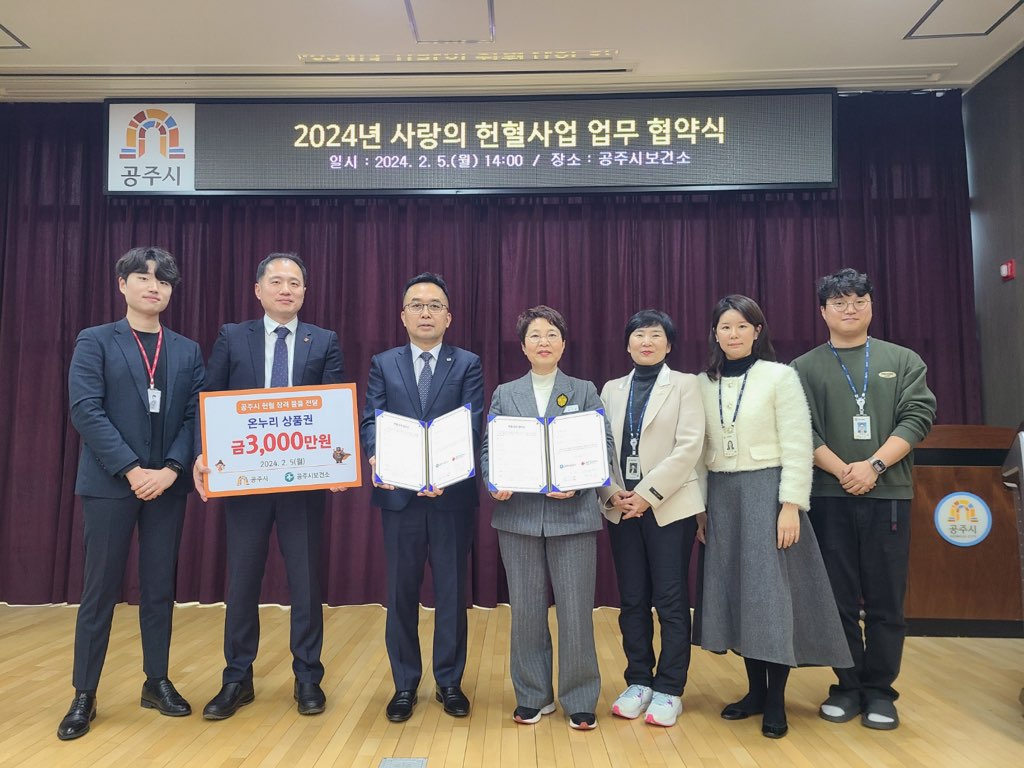 이번 협약은 혈액 수급의 안정화를 돕고 지역 상권도 살리기 위한 목적으로, 공주시는 지속적으로 헌혈 장려사업을 추진할 방침이다.