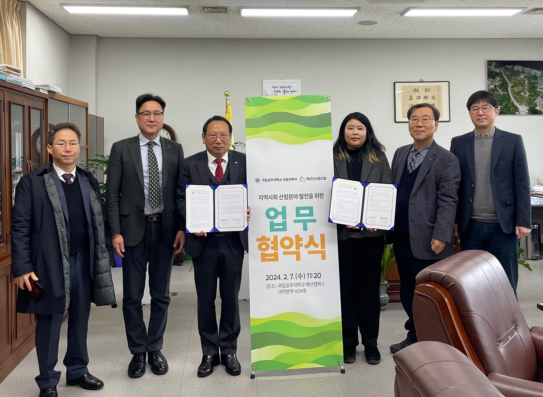 협약식에는 이영진 국립공주대학교 산업과학대학장과 임운규 예산군 산림조합장을 비롯하여 양 기관의 주요 관계자가 참석한 가운데 진행됐다.