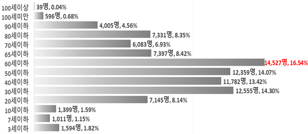 이 중 65세 이상 노인이 2,601명으로 전체의 36.1%를 차지했다.