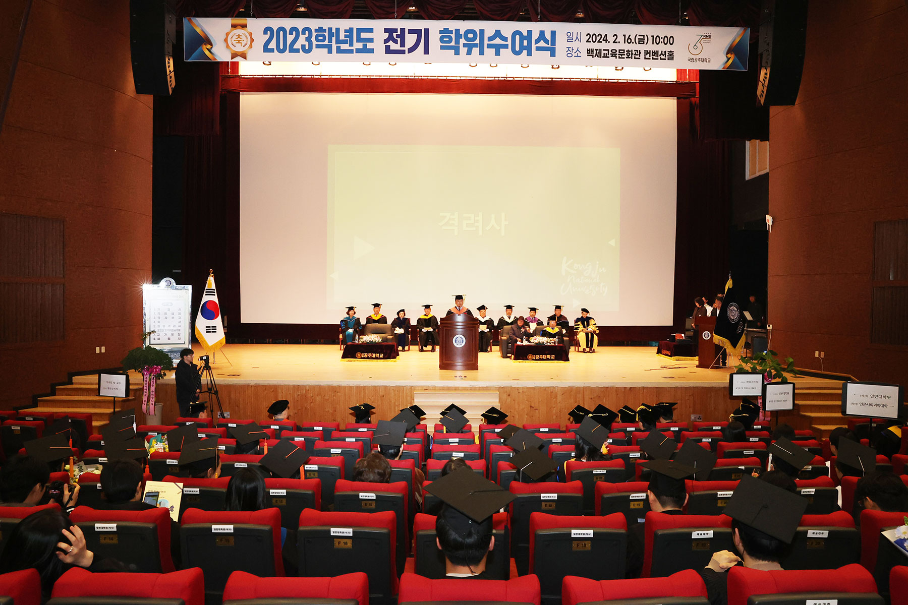 국립공주대학교는 16일 백제교육문화관 컨벤션홀에서 공주캠퍼스(사범대학, 인문사회과학대학, 자연과학대학, 간호보건대학, 예술대학) 졸업생 대상 2023학년도 전기 학위수여식을 실시했다.