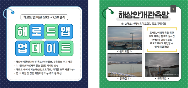 이번 업데이트 버전에서는 기존에 제공하던 풍향·풍속·기온 등 10종 정보 외에 ▲해상안개관측망의 영상정보와 ▲국립수산과학원의 수온정보를 새롭게 제공한다.