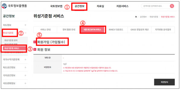 국토지리정보원에서는 인터넷 기반의 실시간 측위보정정보 서비스를 국토정보플랫폼에서 무상 제공하고 있다.