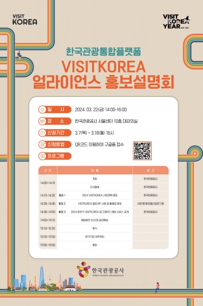 [세종타임즈] 한국관광공사는 외국인 관광객 유치 활성화를 위해 한국관광통합플랫폼 ‘VISITKOREA’와 협업할 ‘VK 얼라이언스’ 회원사를 모집한다.