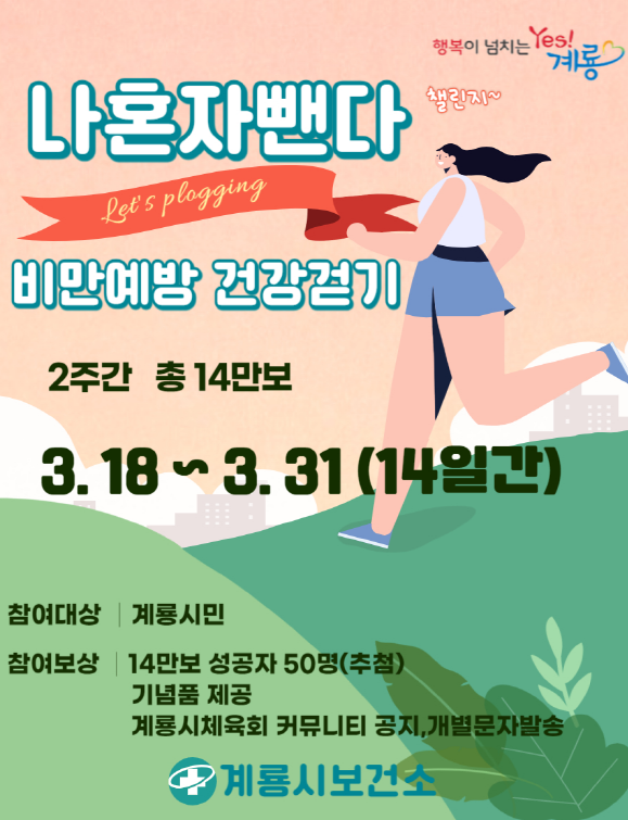 [세종타임즈] 계룡시 보건소는 세계 비만 예방의 날을 기념해 오는 18일 부터 3월 31일까지 비만예방 건강걷기 이벤트를 연다고 밝혔다.