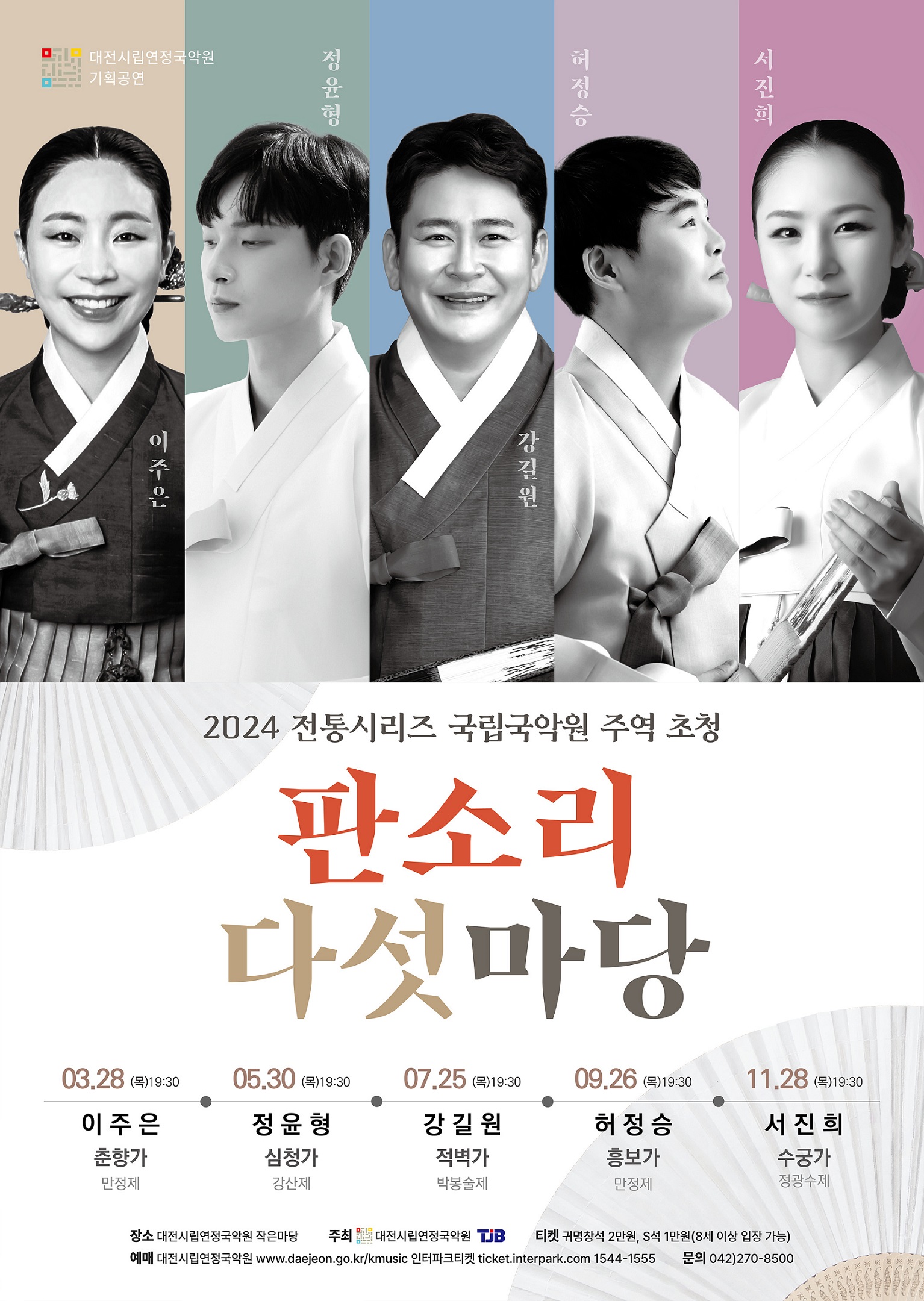 [세종타임즈] 대전시립연정국악원은 TJB대전방송과 공동주최로 2024 전통시리즈“국립국악원(서울, 부산, 남원, 진도) 주역 초청, 판소리 다섯 마당”을 3월 28일부터 11월 28일까지 진행한다.