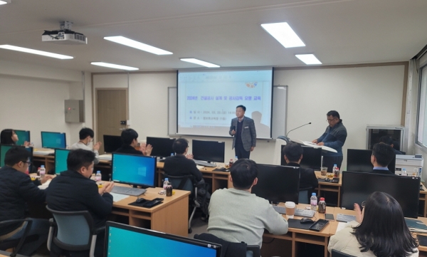 이번 교육은 주로 신규 시설직 공무원을 대상으로 하여, 공사감독 및 준공 검수 요령, 설계 작성 요령 등 효율적인 사업 추진과 부실공사 방지를 목적으로 진행됐다.