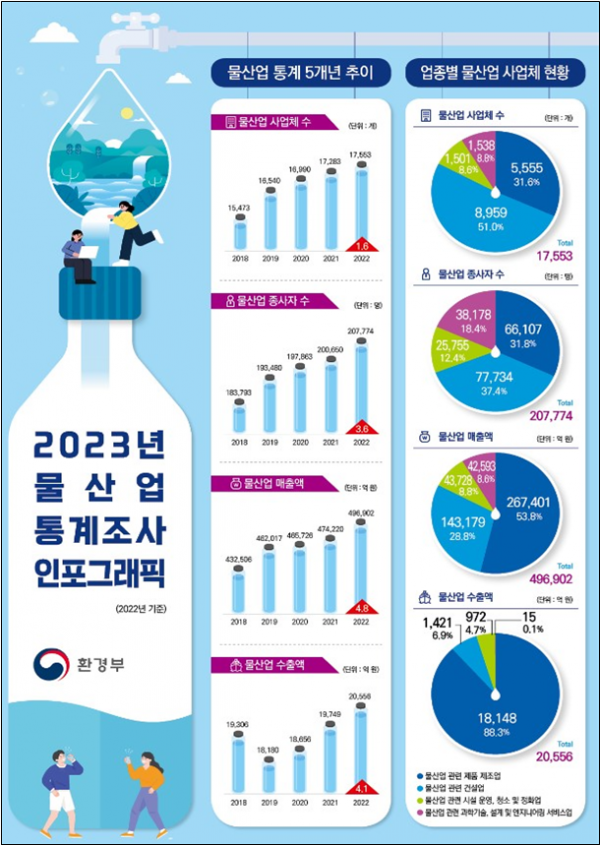 [세종타임즈] 환경부는 2022년 기준 물산업 전반에 대한 현황과 실태를 담은 ‘2023 물산업 통계조사’ 결과를 공개했다.
