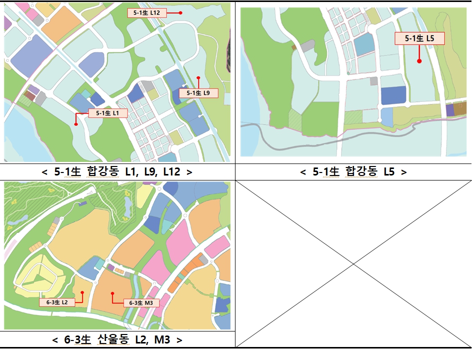 착공물량은 민간분양주택(합강동 L9, L12 블록)과 공공분양주택(합강동 L1 블록)을 포함한 분양주택 1,767호와 통합공공임대주택(합강동 L5 블록, 산울동 L2 블록), 공공지원 민간임대(산울동 M3 블록)를 포함한 임대주택 3,477호로 구성된다. 다만, 민간분양주택의 경우 외부변수(부동산시장 영향, 금리 변동 등) 및 관련 인허가(주택건설사업계획 등) 진행 상황 등에 따라 일정이 변동될 수 있다.