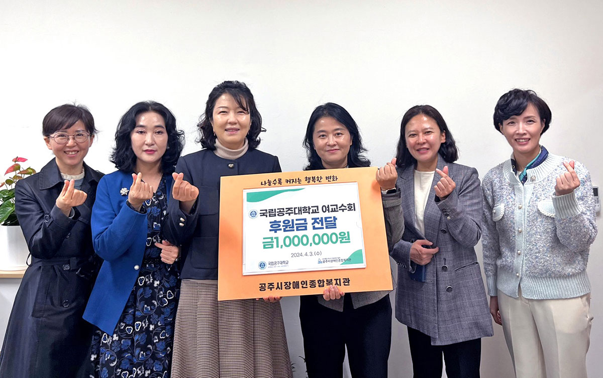 [세종타임즈] 국립공주대학교는 여교수회는 3일 공주시장애인종합복지관을 방문하여 후원금을 기증했다고 4일 밝혔다.