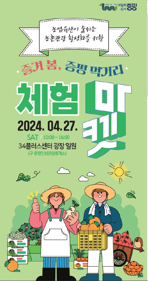 [세종타임즈] 충북 증평군이 오는 27일 34플러스센터 광장에서 ‘즐겨 봄, 증평 먹거리 체험마켓 행사’를 개최한다.