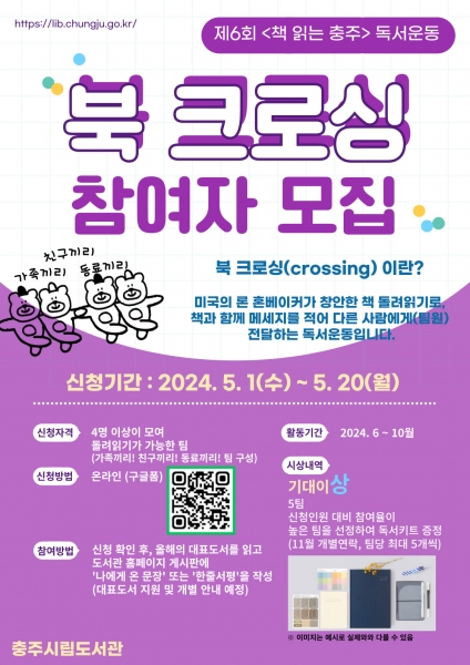 [세종타임즈] 충주시립도서관은 2024년 제6회 ‘책 읽는 충주’ 독서 운동의 일환으로 북 크로싱을 추진한다고 밝혔다.