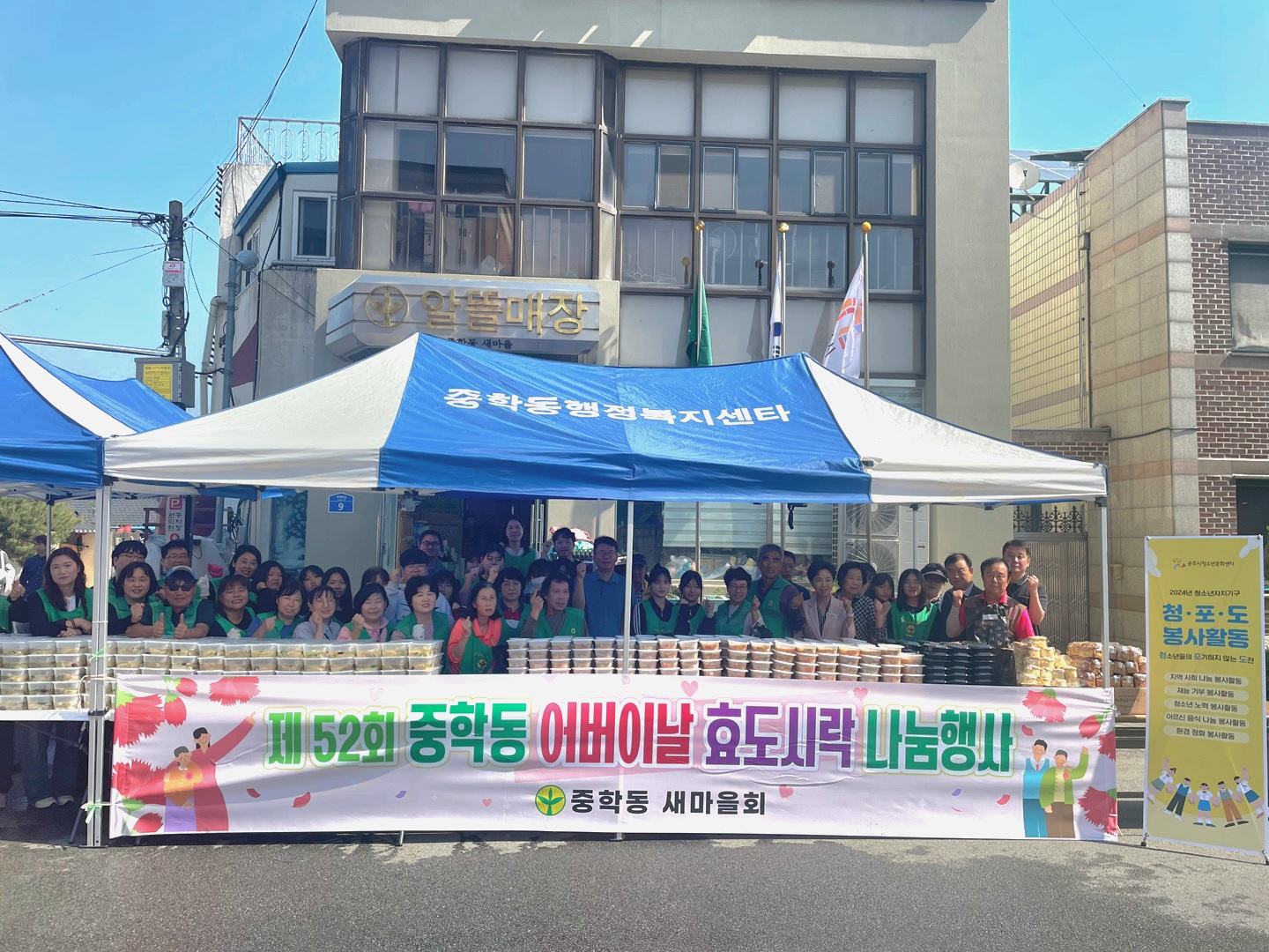 [세종타임즈] 공주시 중학동이 제52회 어버이날을 앞둔 지난 4일 중학동 새마을협의회 소속 회원들의 재능기부로 ‘삼계탕 효도 도시락’을 나누는 경로잔치를 개최했다.