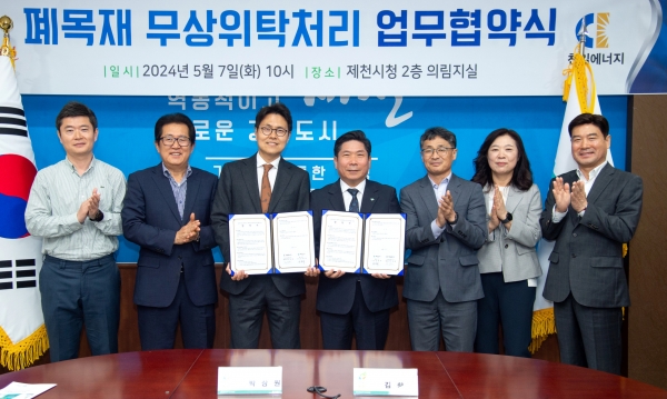 [세종타임즈] 제천시는 7일 천일에너지와 자원관리센터 폐목재 무상위탁처리 업무협약을 체결했다.