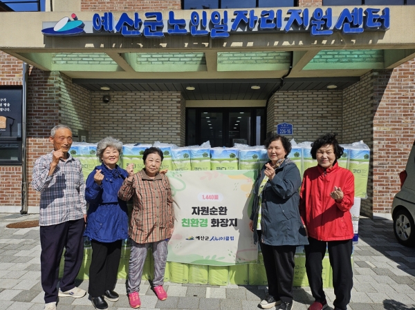 [세종타임즈] 예산군 노인일자리 수행기관인 예산군시니어클럽은 5월 가정의 달을 맞아 예산군노인요양원과 수덕사노인요양원에 사랑의 두루마리 화장지 1440롤을 전달했다.