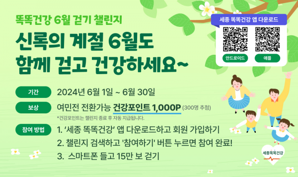 [세종타임즈] 세종시는 시민들의 건강 관리를 지원하기 위해 ‘세종 똑똑건강앱’에서 15만보 걷기 챌린지를 진행한다.