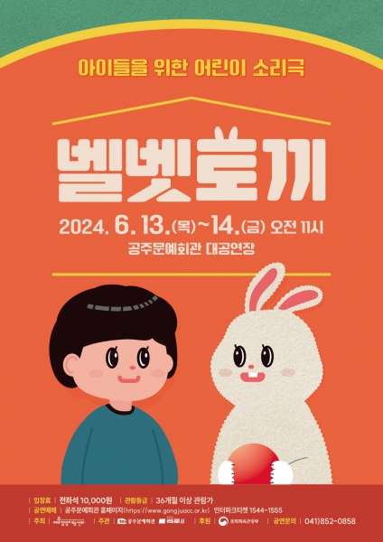 [세종타임즈] 오는 6월 13일, 어린이소리극 '벨벳토끼' 공연이 공주문예회관 대공연장 무대에 오른다.