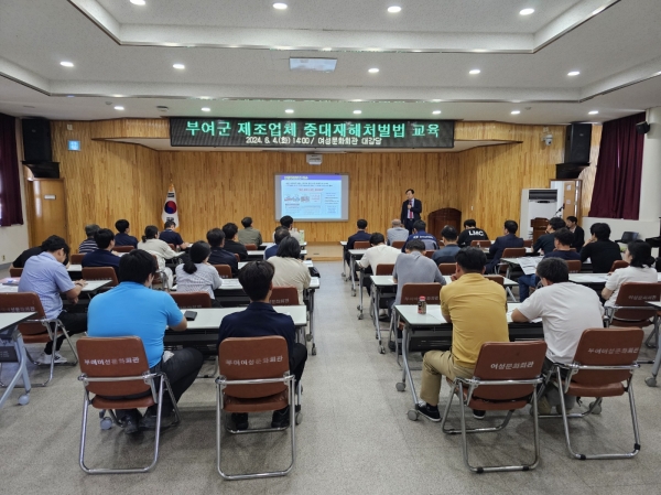 [세종타임즈]부여군은 지난 4일 여성문화회관에서 관내 중소기업 사업주 및 안전관리자 50명을 대상으로 중대재해처벌법 교육을 실시했다.
