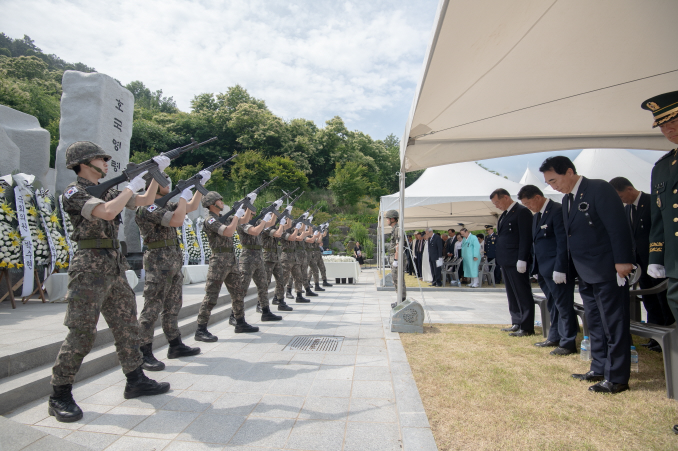 이날 행사는 10시 정각 사이렌 취명과 동시에 제3585부대 3대대의 조총 발사를 시작으로 순국선열과 호국영령에 대한 묵념, 헌화 및 분향, 추념사, 헌시낭독, 현충일 노래 제창 등의 순으로 엄숙하게 진행됐다.