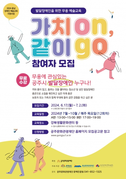 [세종타임즈] 공주문화관광재단에서 관내 발달장애인을 대상으로 단계별 맞춤 무용 예술교육인 ‘가치 ON, 같이 GO’ 참여자를 모집한다.