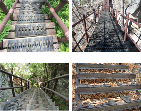 국립공원에 설치된 타이어매트는 폐타이어를 재활용해 밧줄 형태로 엮어 만든 고무매트로 적설량이 많고 급경사 지형으로 이루어진 설악산, 덕유산, 지리산 등 산악형 국립공원에 주로 설치됐다.