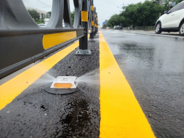 쿨링&클린로드는 도로 중앙선에 작은 사각형 모양으로 공공하수처리장에서 공급되는 재이용수를 도로면에 자동으로 분사하는 자동 살수시스템이다. 이 시스템은 여름철 뜨거운 열기로 달아오른 아스팔트에 물을 분사해 도로면 온도를 낮추는 동시에 미세먼지 저감에도 도움이 된다.