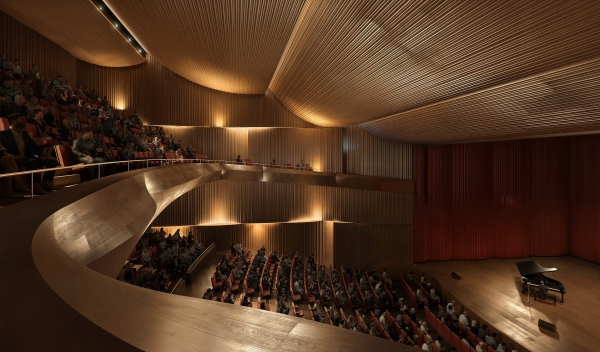 내부는 따뜻한 색조의 나무로 마감되어 자연과 어우러지는 멋스러운 공간으로 구성되었다. 중공연장은 클래식, 오페라, 뮤지컬, 연극 등 다양한 공연이 가능한 다목적 공간으로 설계되었으며, 소공연장은 홍예공원 수변공간으로도 개방되어 다채로운 공연과 행사가 가능하도록 설계되었다.