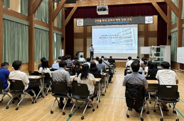 이번 교육에는 건축물 해체계획서 작성·검토 등을 대행하는 건축사, 해체 감리자, 시공자, 관계 공무원 등 40여 명이 참석했다.